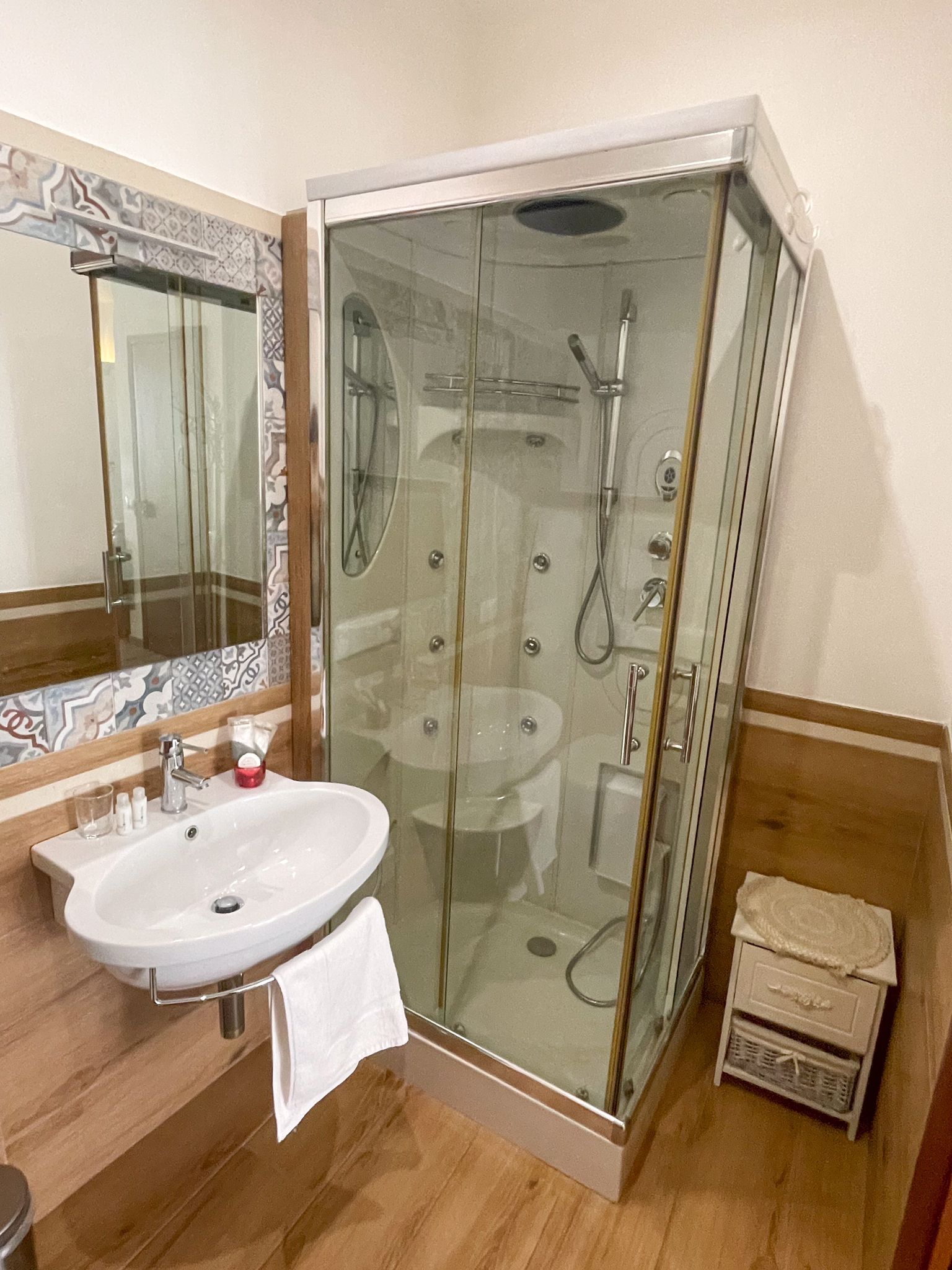 Dispone di camere con sistemazione singola, matrimoniale, tripla e/o quadrupla, ognuna dotata di bagno privato con box-doccia o vasca idromassaggio.